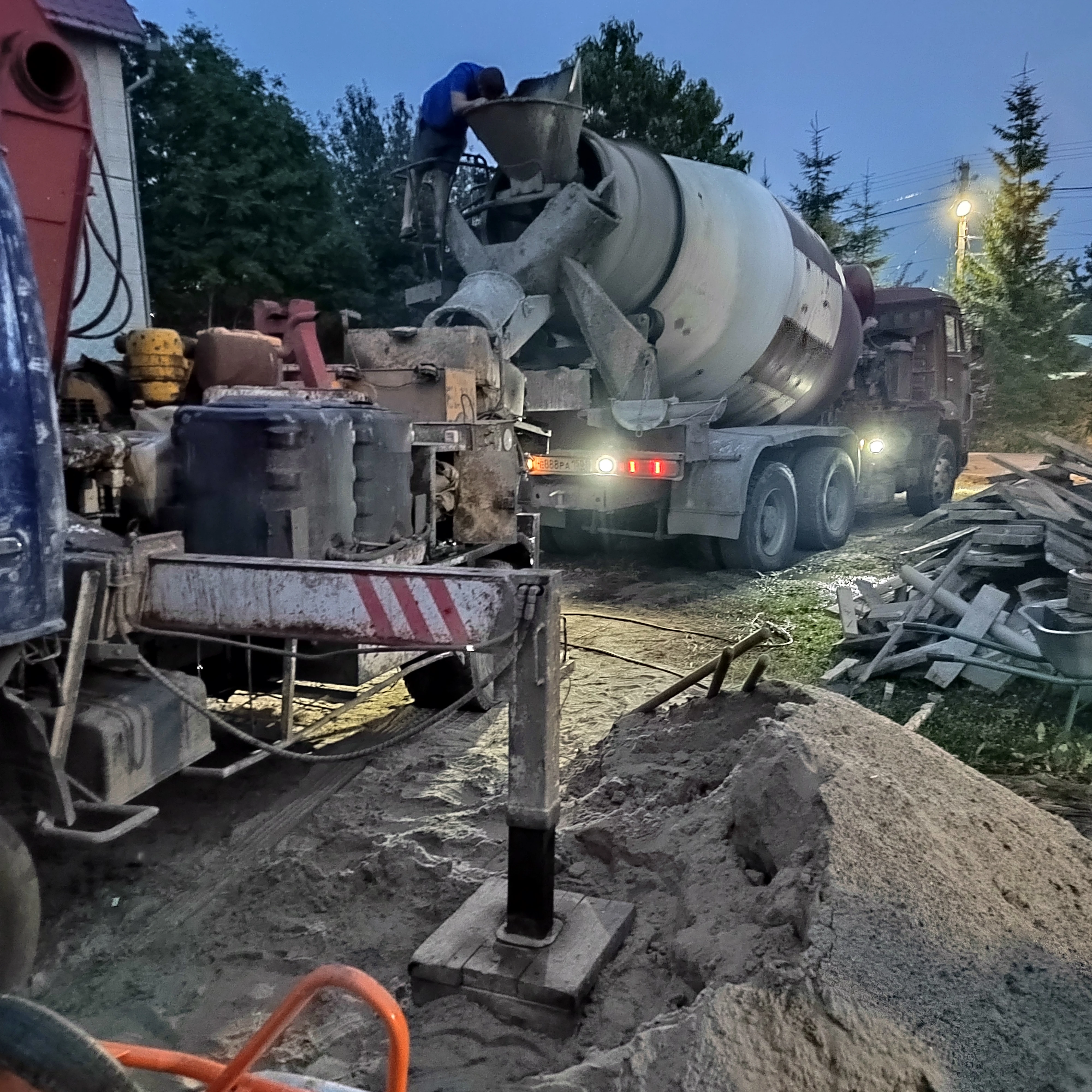 Для земляных и бетонных работ используем свою спецтехнику: экскаваторы, погрузчики, бетонные насосы, самосвалы. Это позволяет выходить на объект в нужный день и не зависеть от сторонних подрядчиков.